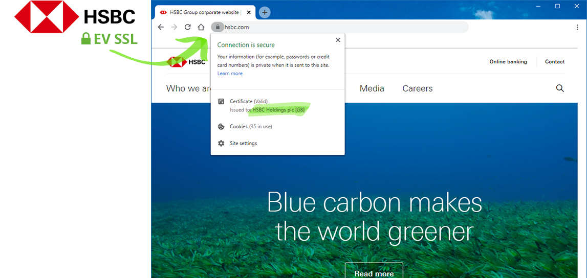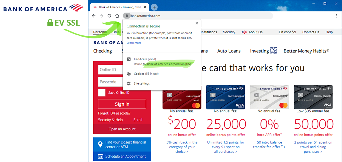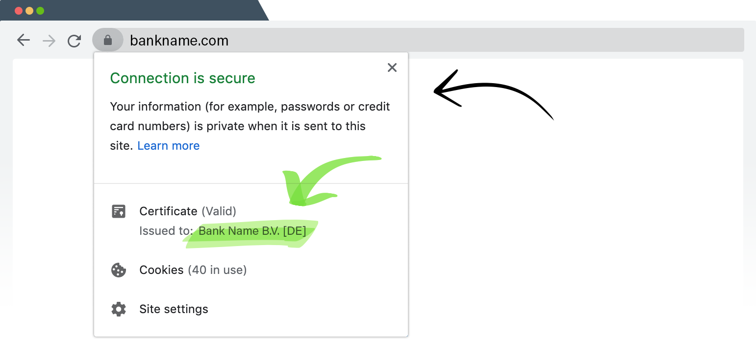 Anzeige des Firmennamens im Browser - ein Synonym für Sicherheit. Kunden erkennen Ihre echte Website - sie sehen den Namen der Bank