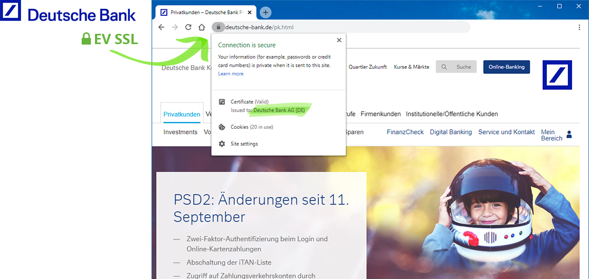 Mehr und Mehr Kunden achten auf der Firmenname im Browser. Sie dienst als Synonym für Sicherheit, und ist damit ein must-have für Banken